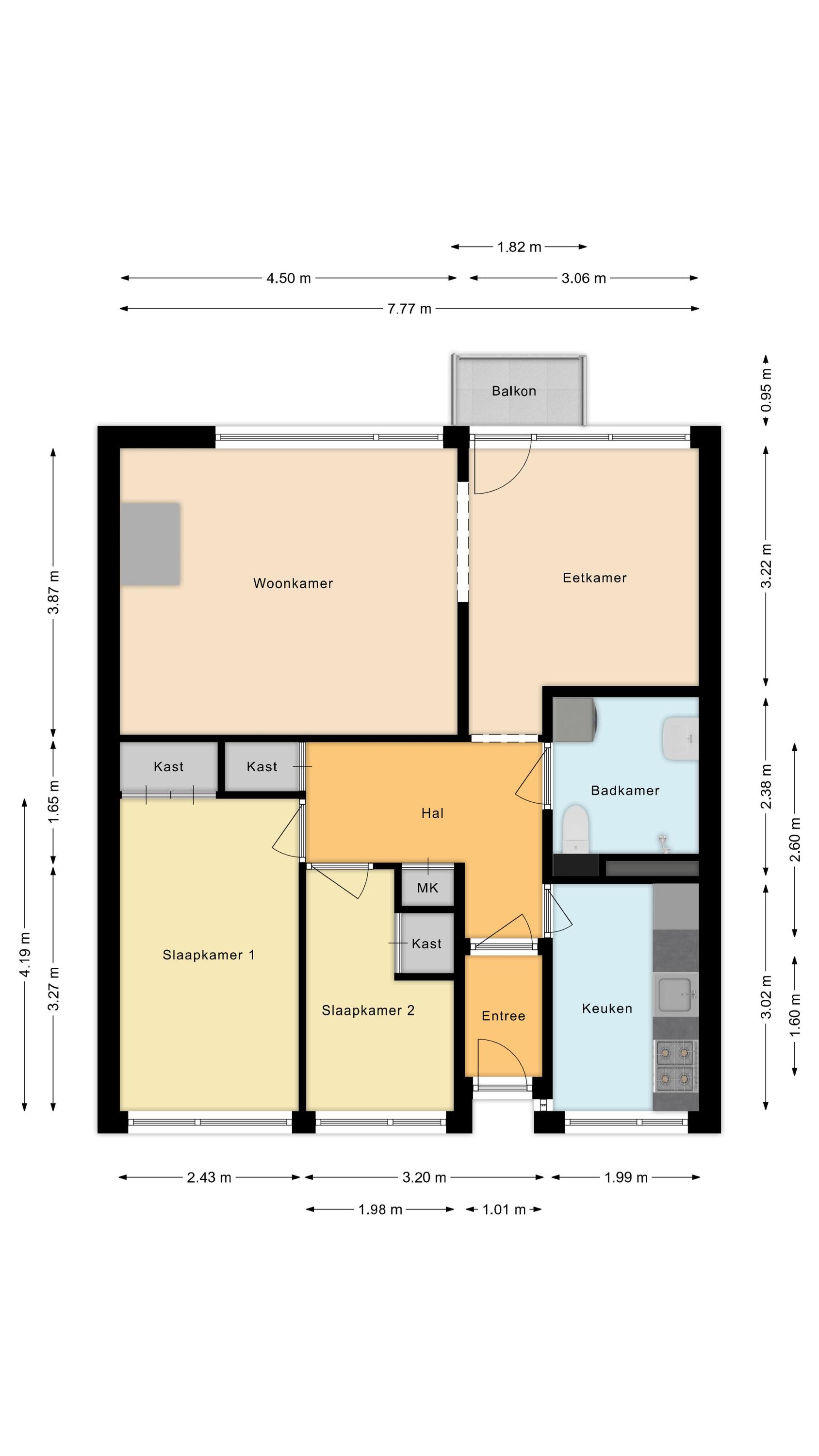 Indelingstekeningen en maatvoeringen zijn slechts indicatief, kunnen afwijken van de werkelijke situatie en zijn uitsluitend bedoeld om een indruk te geven van de indeling. De Meetinstructie is gebaseerd op de NEN2580. De Meetinstructie is bedoeld om een meer eenduidige manier van meten toe te passen voor het geven van een indicatie van de gebruiksoppervlakte. De Meetinstructie sluit verschillen in meetuitkomsten niet volledig uit, door bijvoorbeeld interpretatieverschillen,