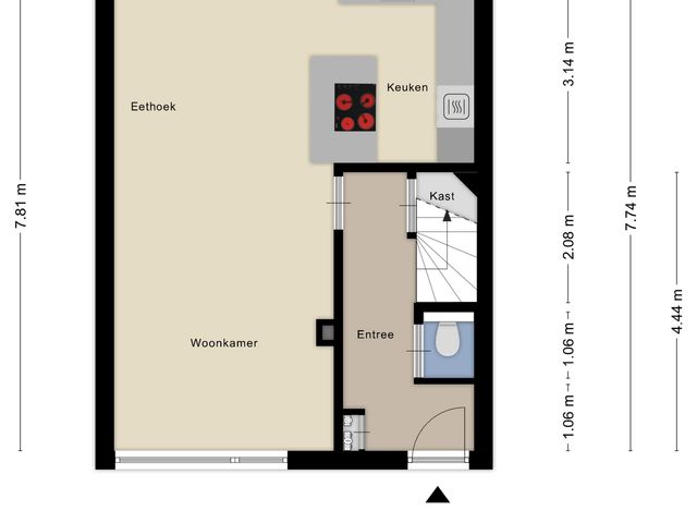 Indelingstekeningen en maatvoeringen zijn slechts indicatief, kunnen afwijken van de werkelijke situatie en zijn uitsluitend bedoeld om een indruk te geven van de indeling. De Meetinstructie is gebaseerd op de NEN2580. De Meetinstructie is bedoeld om een meer eenduidige manier van meten toe te passen voor het geven van een indicatie van de gebruiksoppervlakte. De Meetinstructie sluit verschillen in meetuitkomsten niet volledig uit, door bijvoorbeeld interpretatieverschillen, afrondingen of beperkingen bij het uitvoeren van de meting.