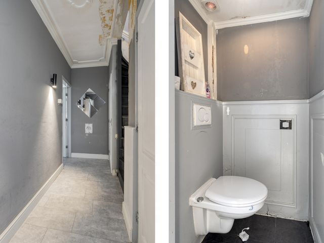Overloop met wasmachineaansluiting en opstelplaats van de cv-ketel (Vaillant, bouwjaar 2007). Vanaf de overloop is de vierde slaapkamer bereikbaar.