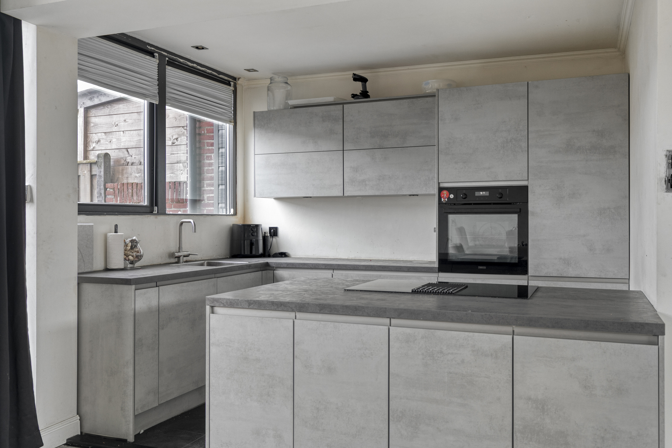 De moderne open keuken is uitgerust met diverse inbouwapparatuur en beschikt eveneens over kunststof kozijnen met HR++ beglazing.
