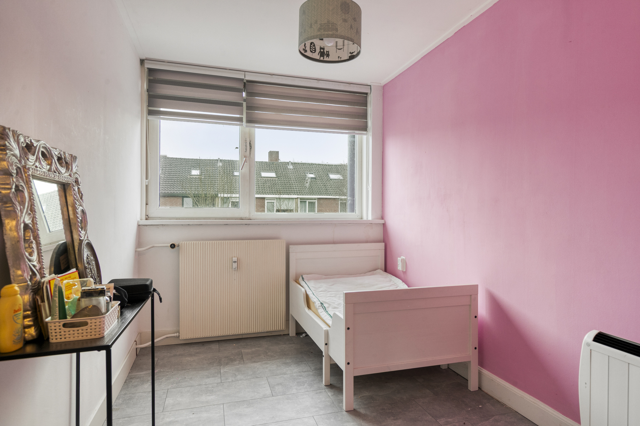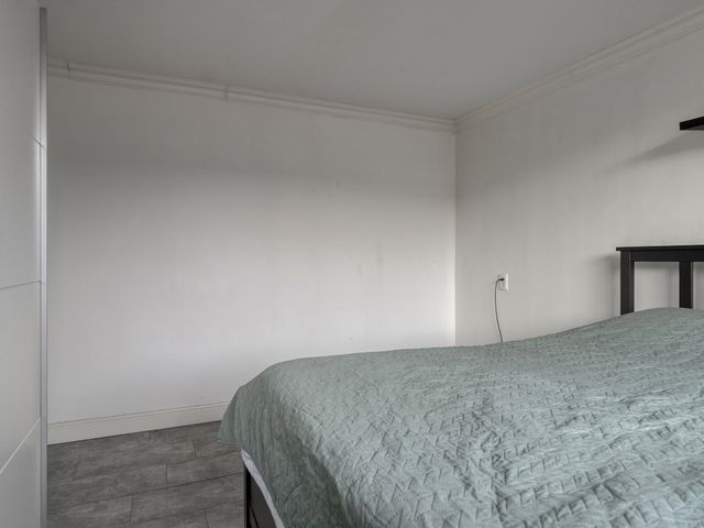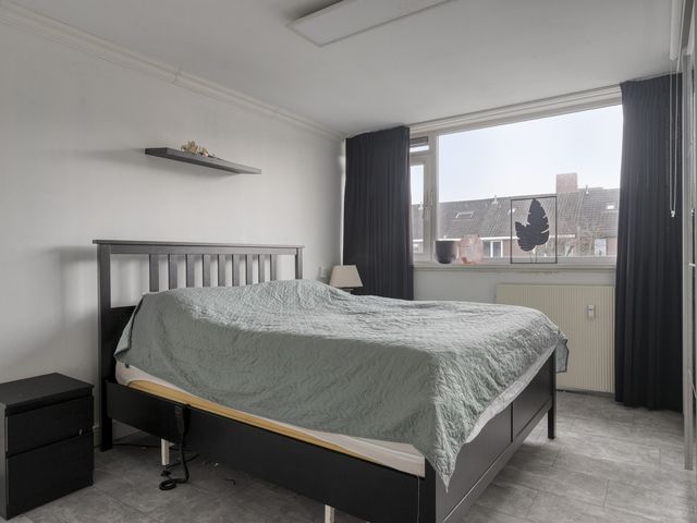 Slaapkamer I, gelegen an de voorzijde, is afgewerkt met strak gestucte wanden en plafonds en voorzien van kunststof kozijnen met HR++ beglazing en draaikiepfunctie.
