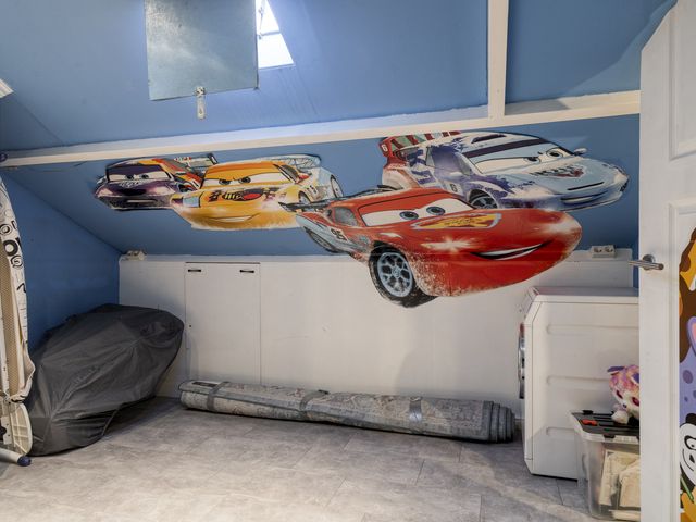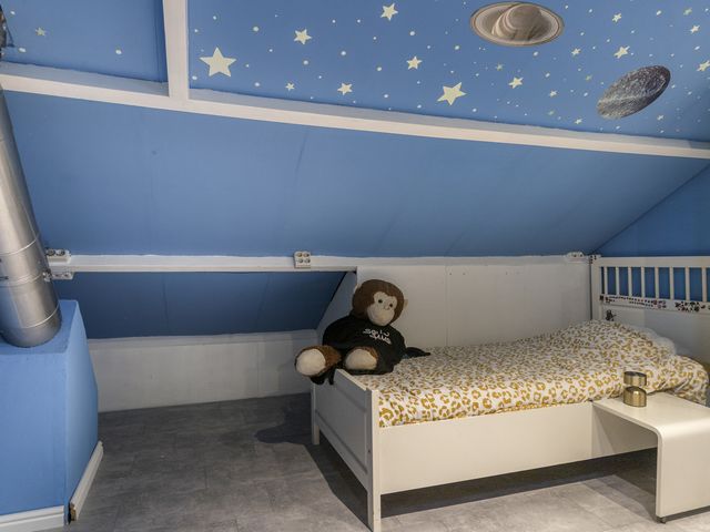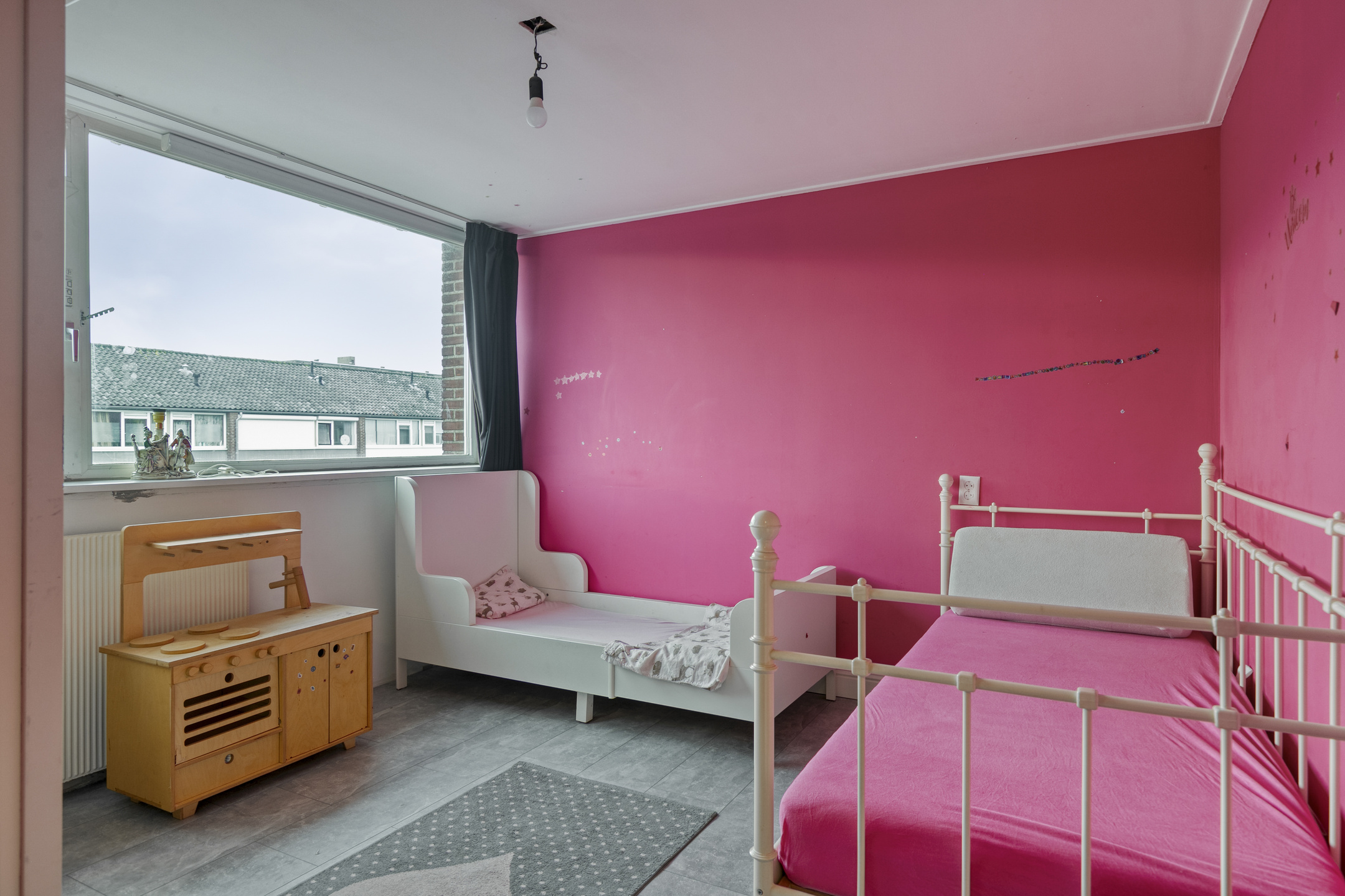 Slaapkamer II, gelegen aan de achterzijde, beschikt over strak gestucte wanden en plafonds en kunststof kozijnen met HR++ beglazing en draaikiepfunctie.