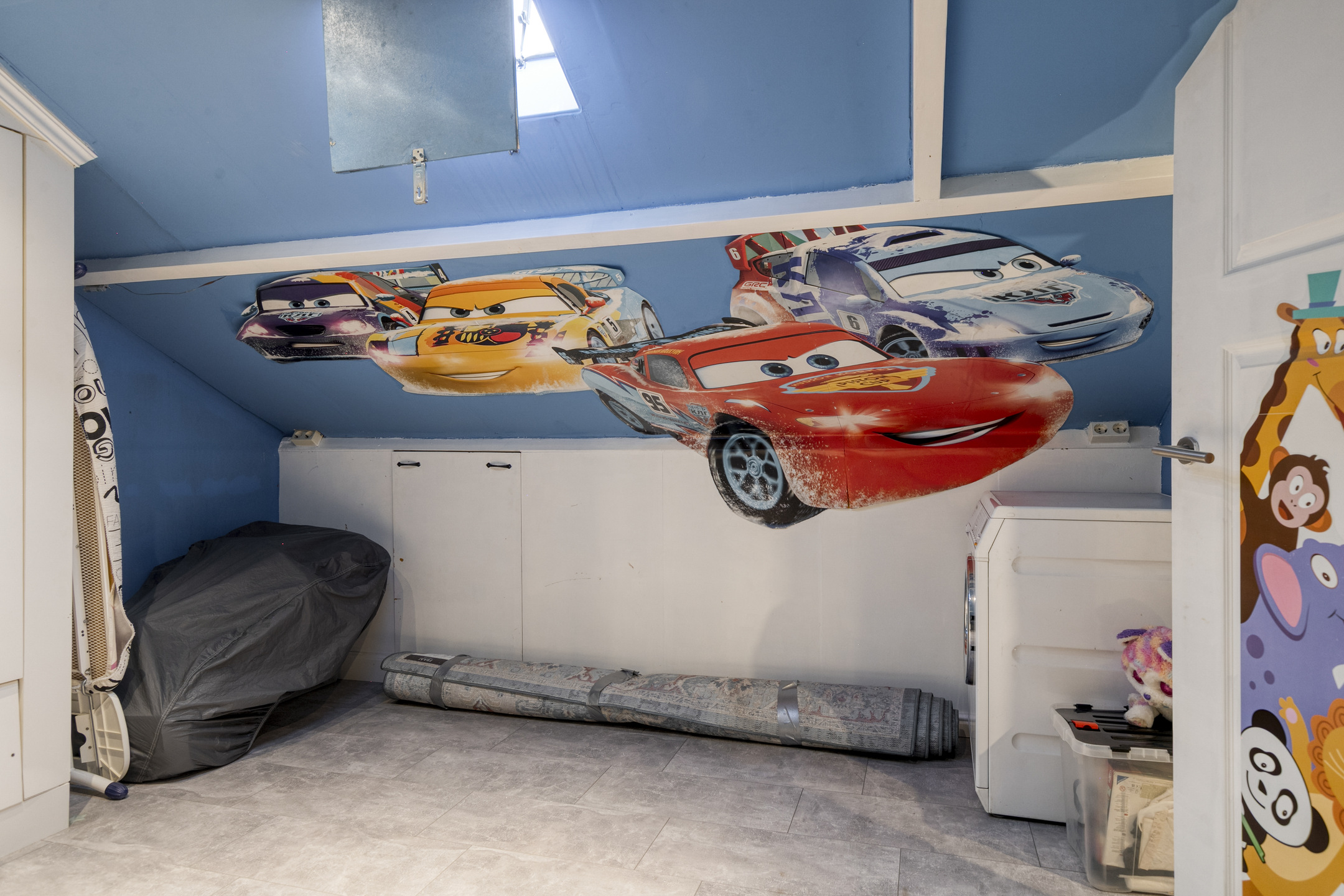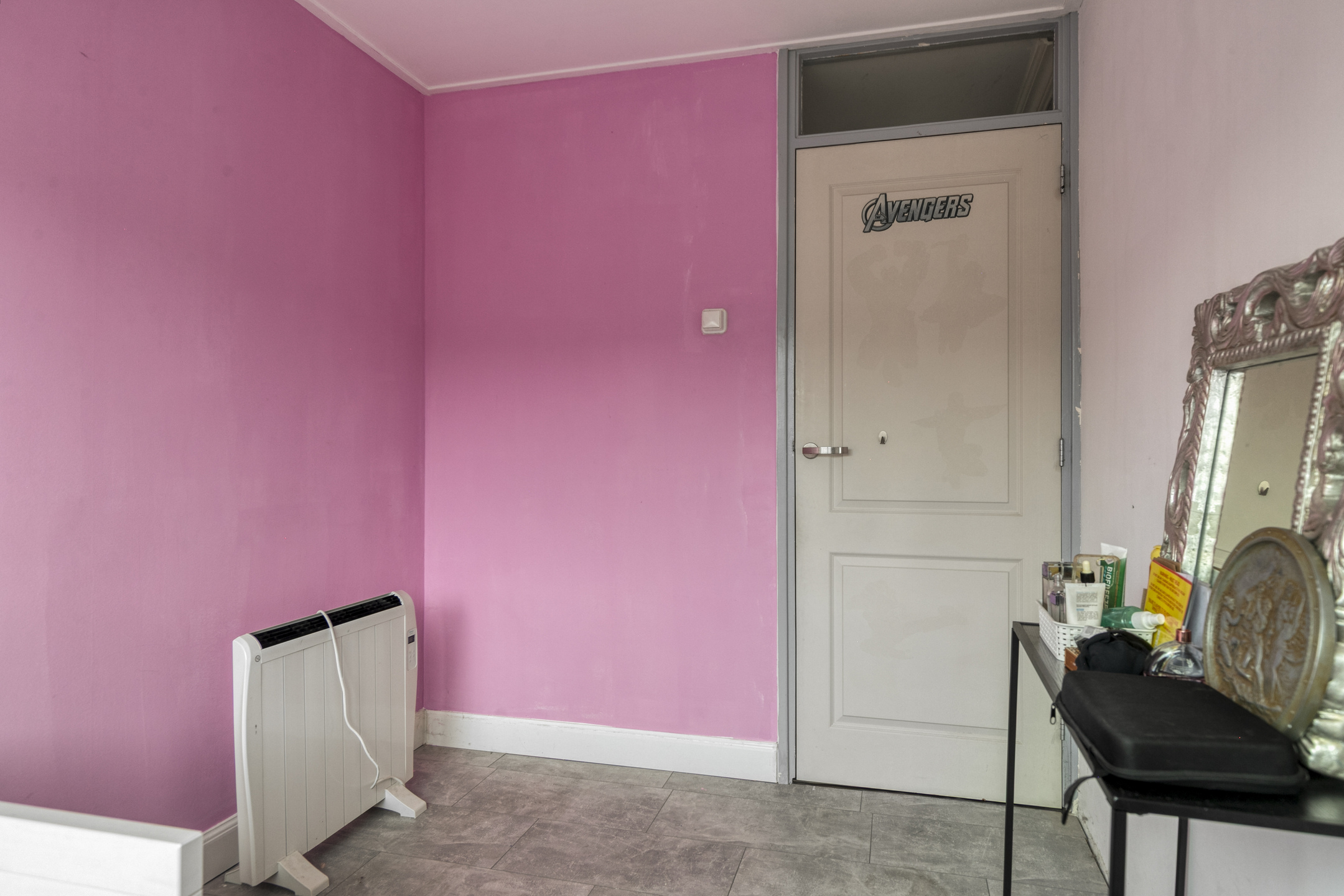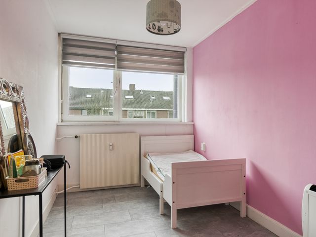 Slaapkamer III, eveneens aan de achterzijde, is afgewerkt met strak gestucte wanden en plafonds en voorzien van kunststof kozijnen met HR++ beglazing en draaikiepfunctie.