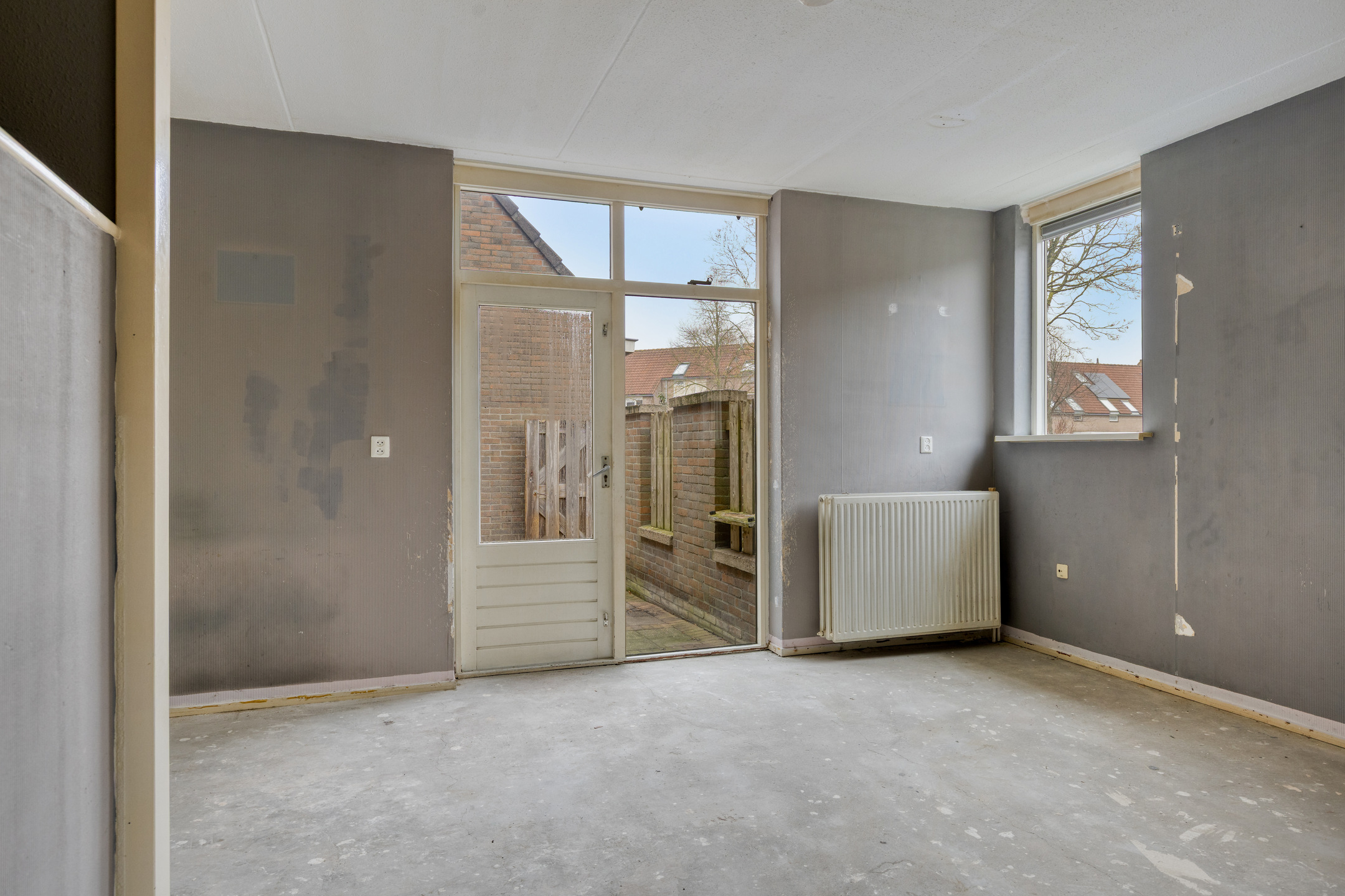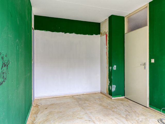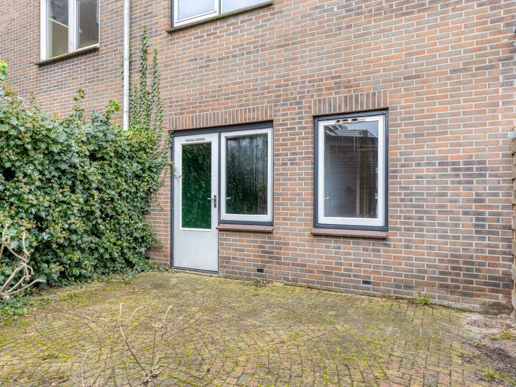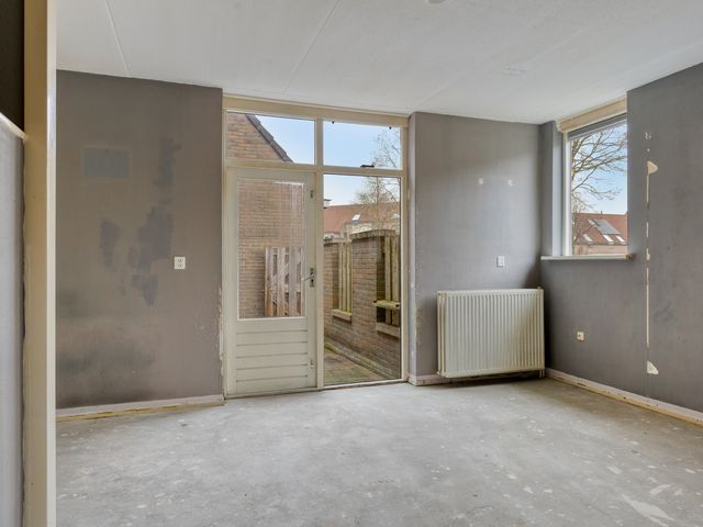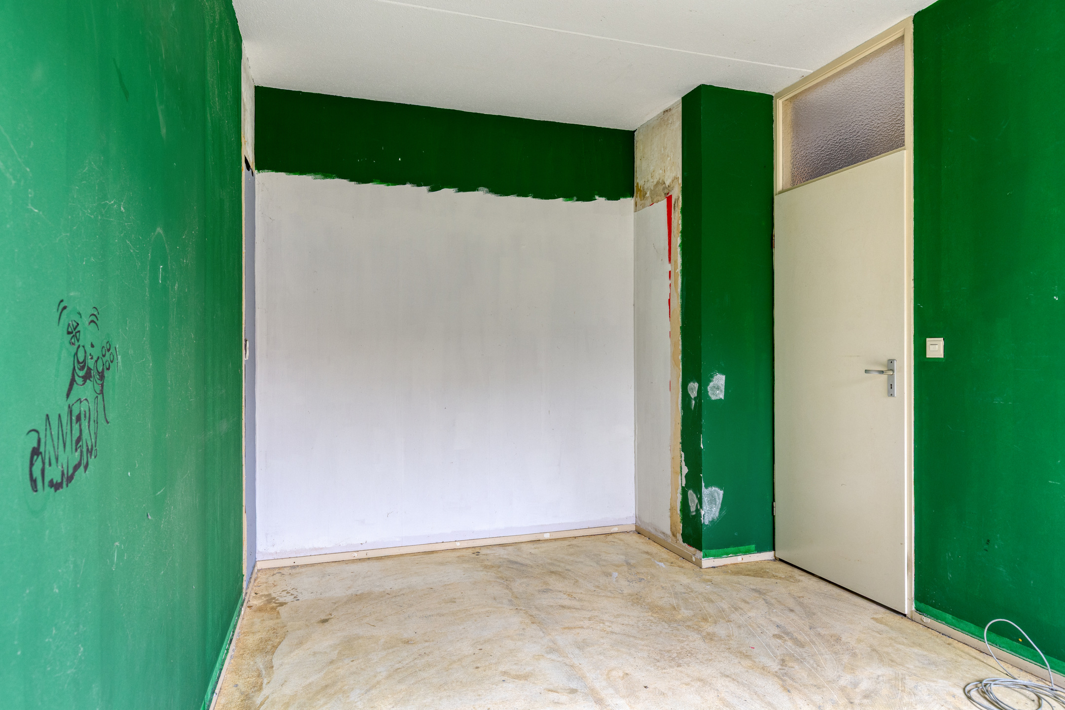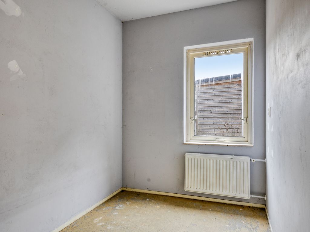 Slaapkamer II, eveneens aan de achterzijde, beschikt over een houten kozijn met enkel glas en een achterdeur met directe toegang tot de achtertuin.