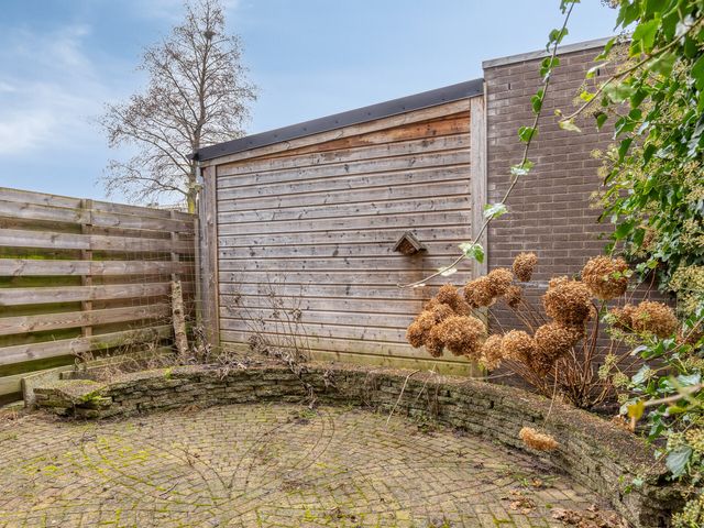 De achtertuin is gelegen op het westen. De voortuin beschikt over een stenen berging en aan de buitenzijde is ruime parkeergelegenheid op eigen terrein.