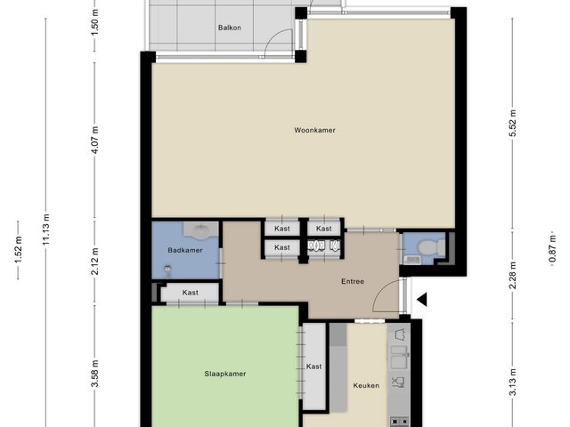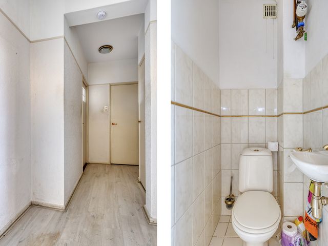 Bij binnenkomst valt direct de prettige indeling op. De entree is voorzien van een laminaatvloer, meterkast, toiletruimte, praktische inbouwkast en toegang tot alle vertrekken.