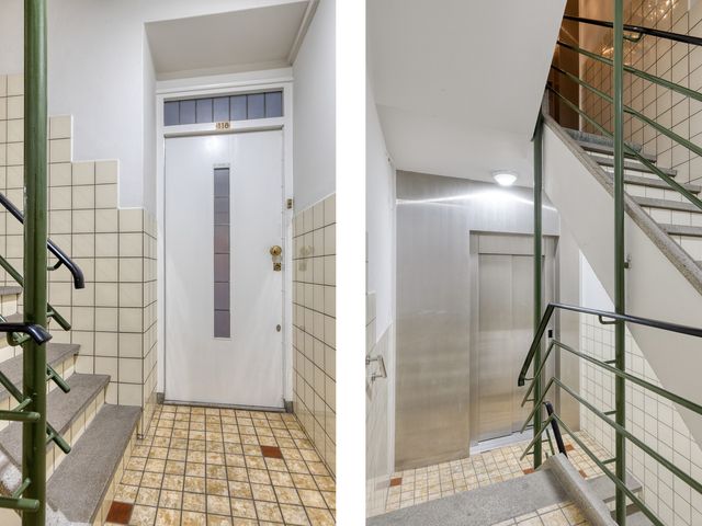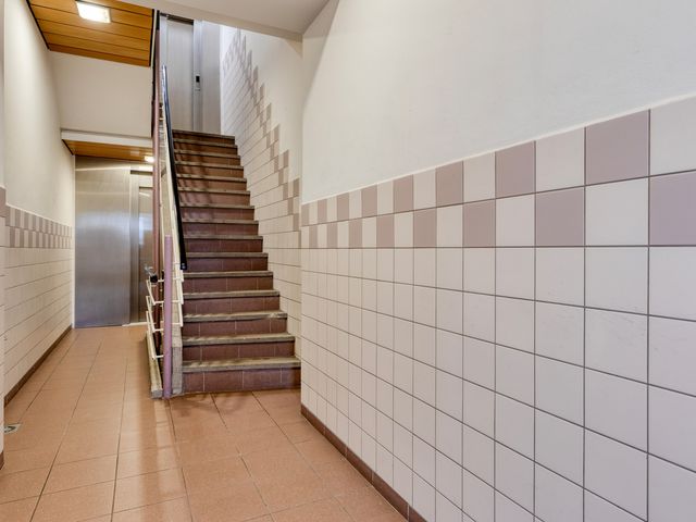 Via de nette centrale entree met brievenbussen, liftinstallatie en trappenhuis bereik je het appartement.