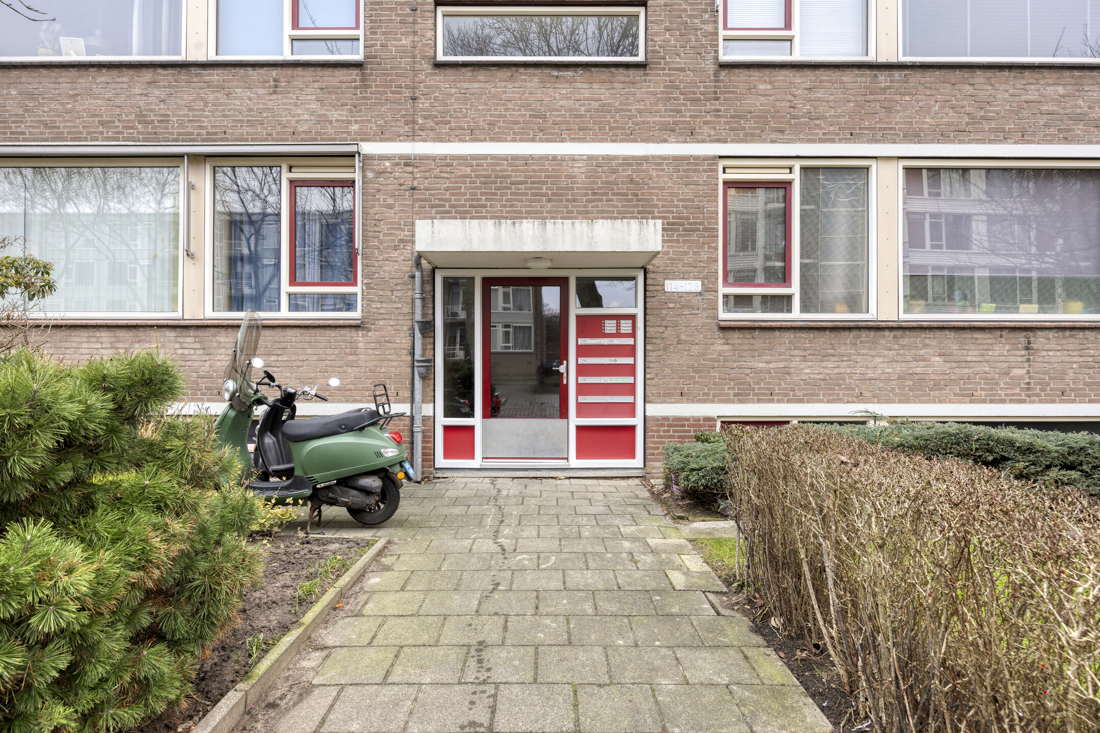 Via de afgesloten entree met brievenbussen en trappenhuis bereik je het appartement en de berging in de kelder.