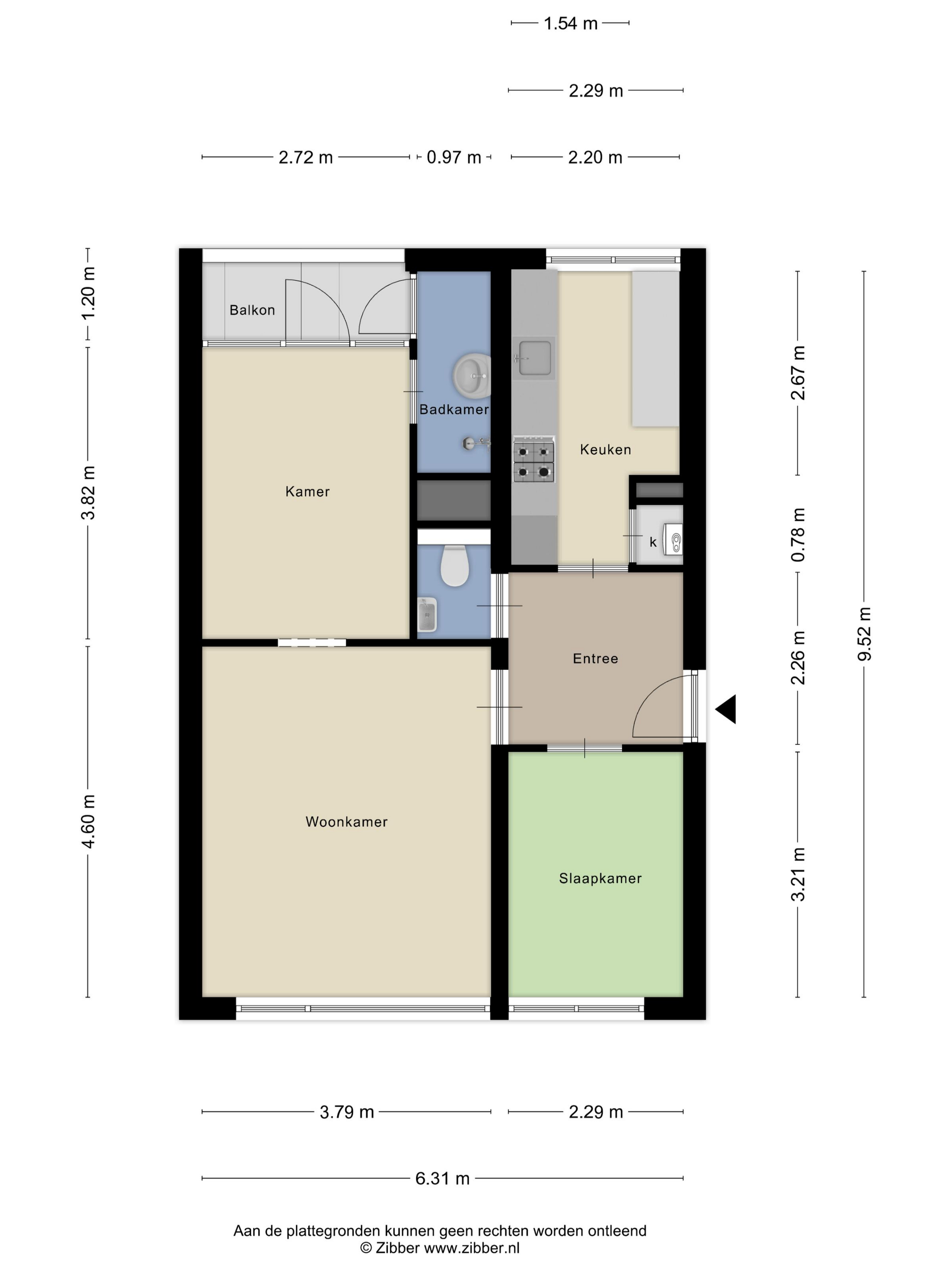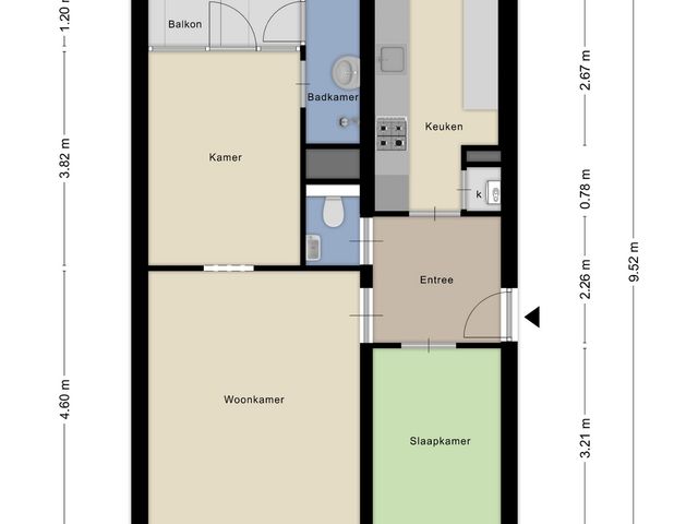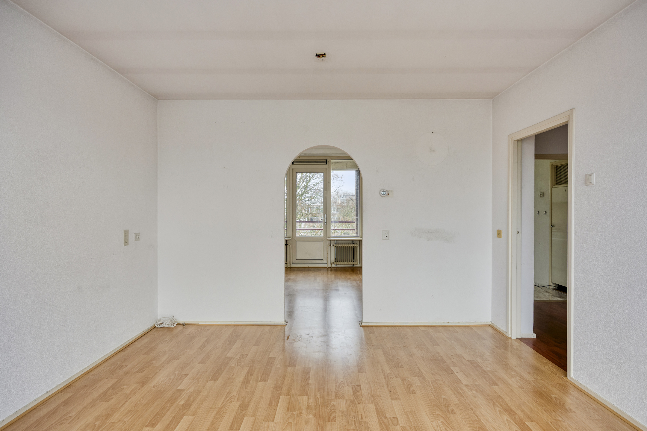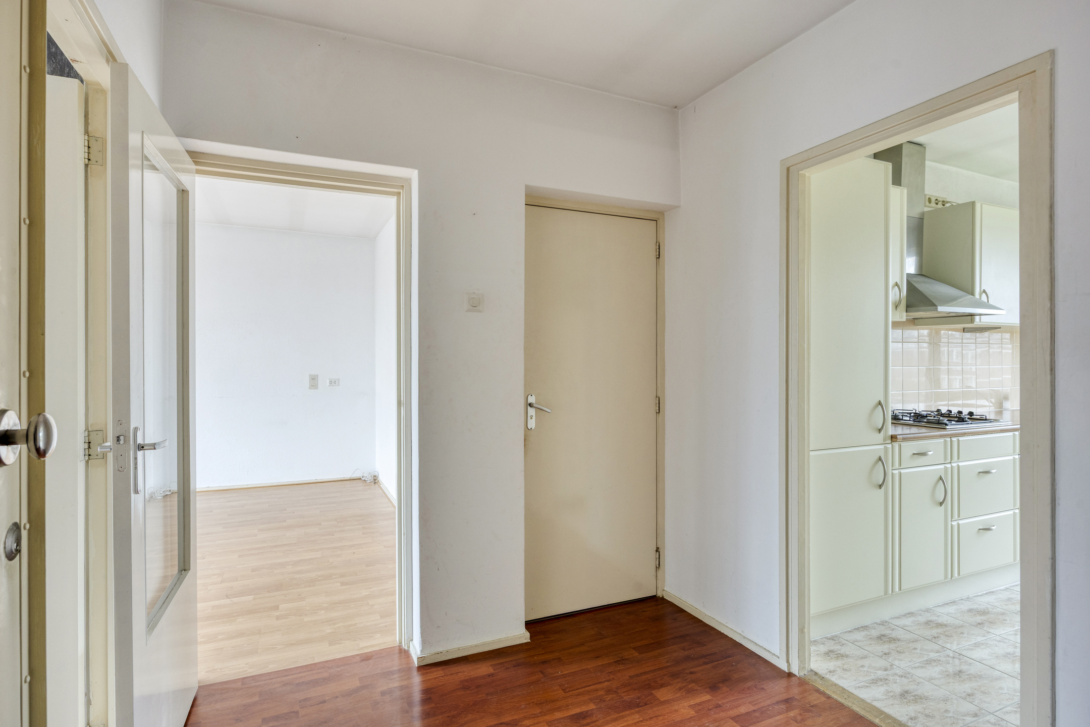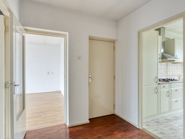 Entree met laminaatvloer en toegang tot alle vertrekken van de woning en toiletruimte.