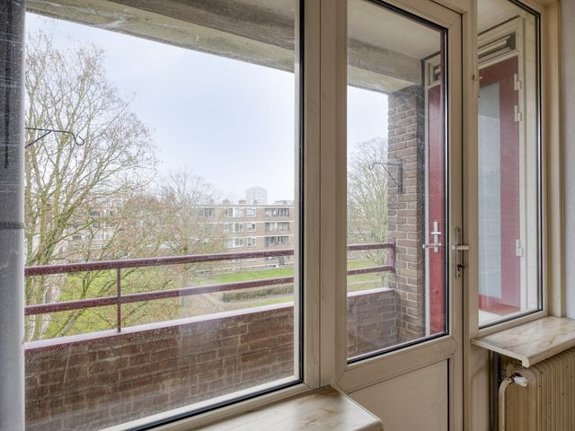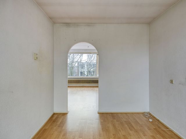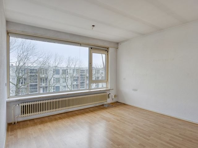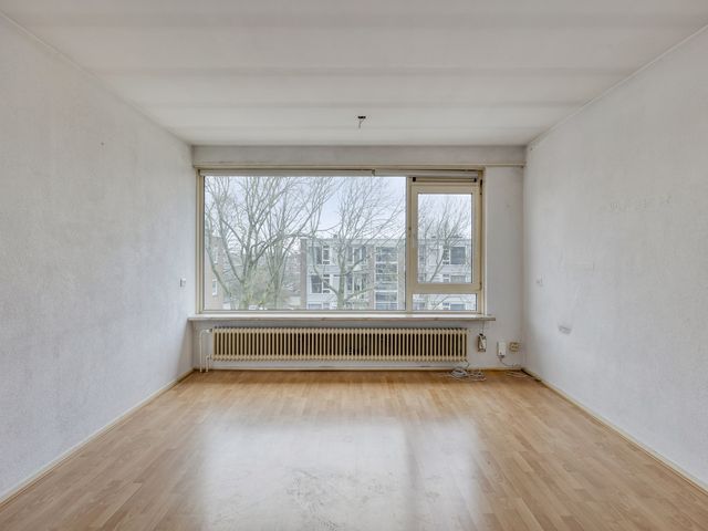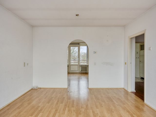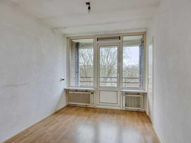 De woonkamer beschikt over een laminaatvloer en heeft veel lichtinval. Middels een toog toegang tot de slaap-/ achterkamer. Deze ruimte is multifunctioneel en kan uitstekend dienen als tweede slaapkamer, werkkamer of hobbyruimte en heeft toegang tot het balkon en de badkamer. De badkamer is voorzien van een douche en vaste wastafel.