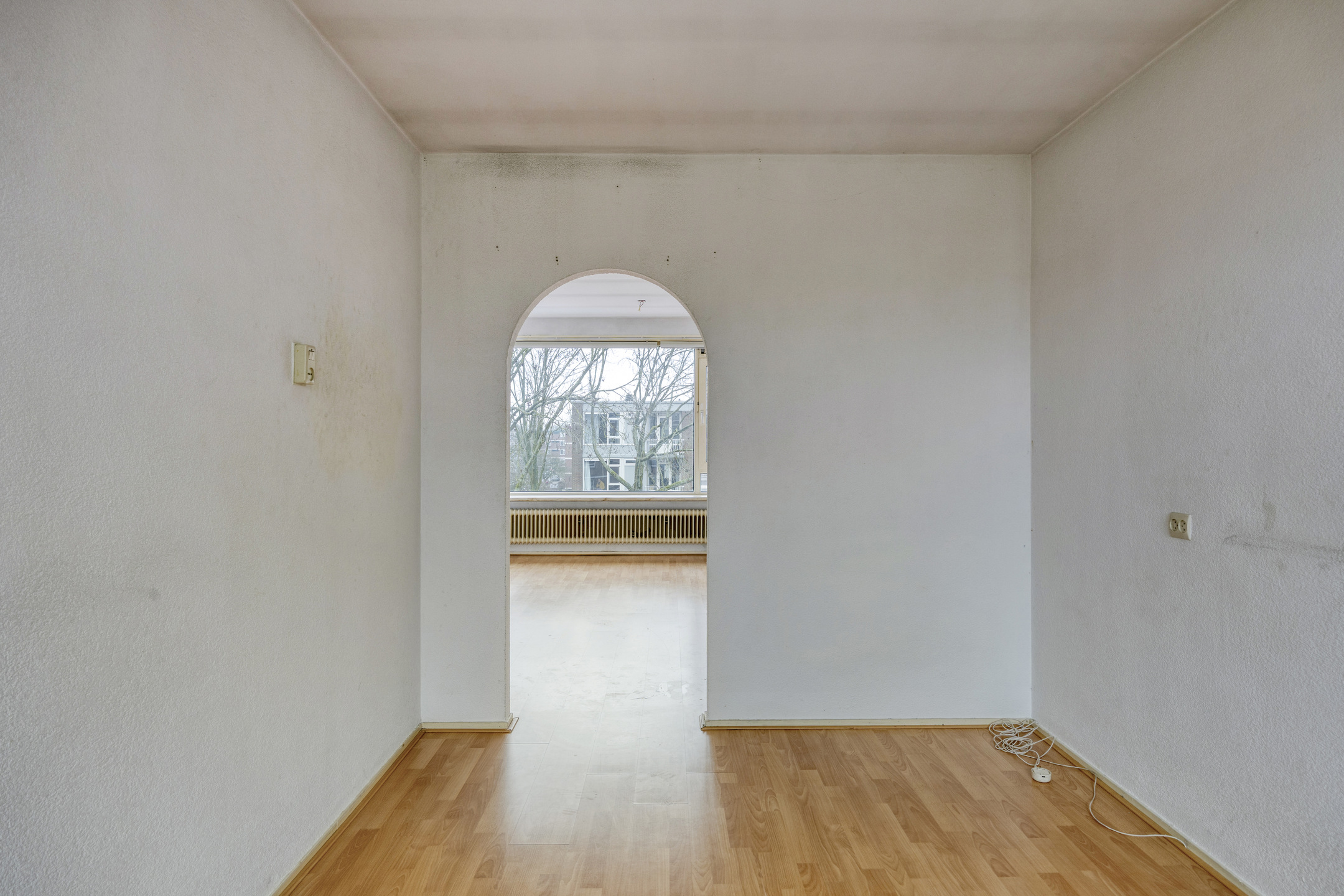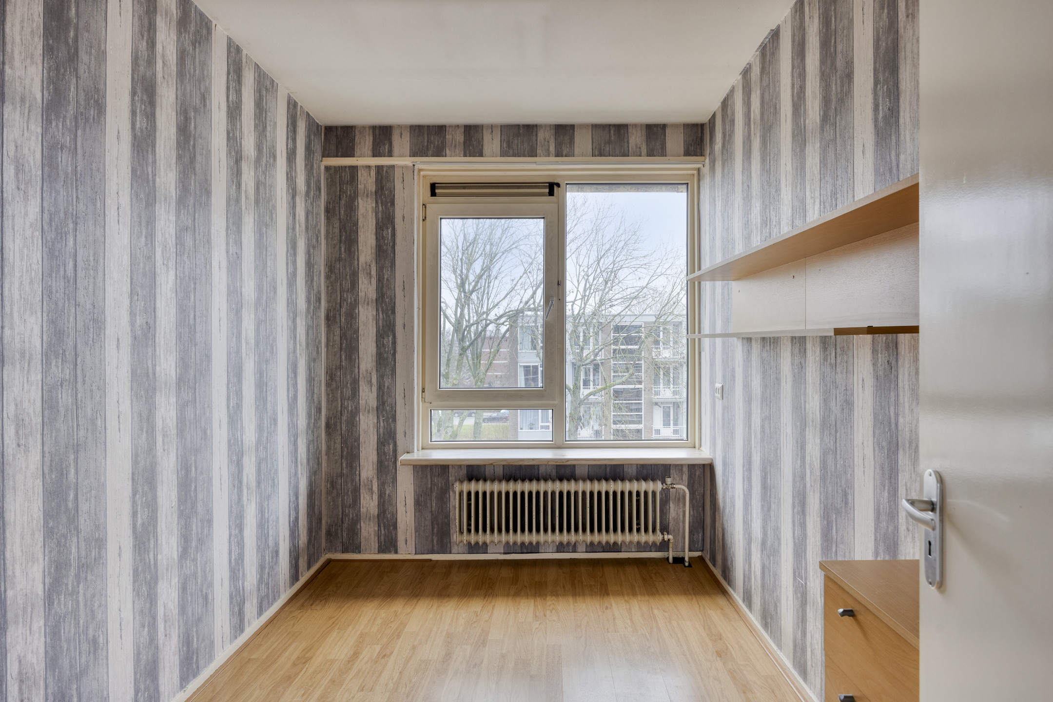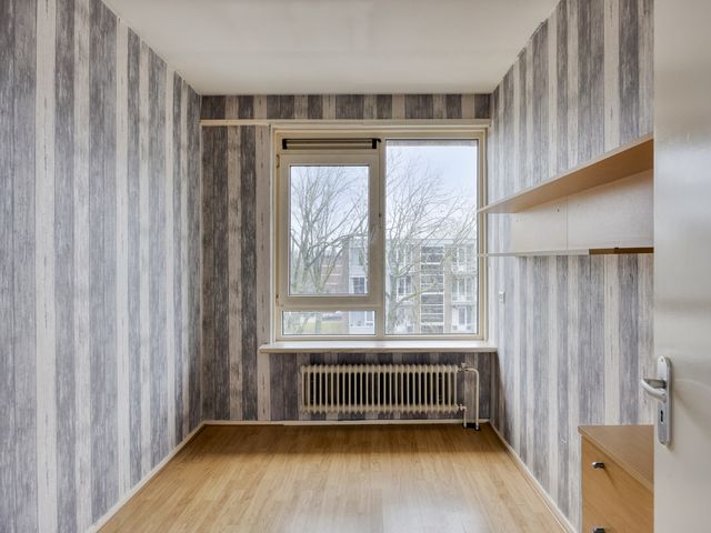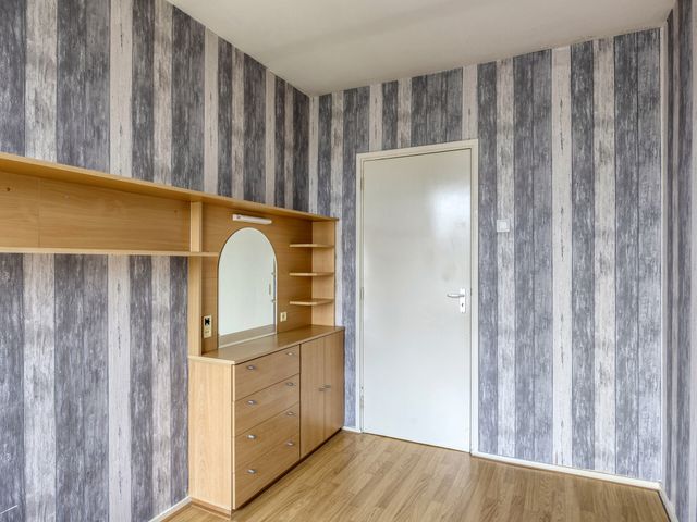 Aan de voorzijde van het appartement ligt de 2e slaapkamer met laminaatvloer.